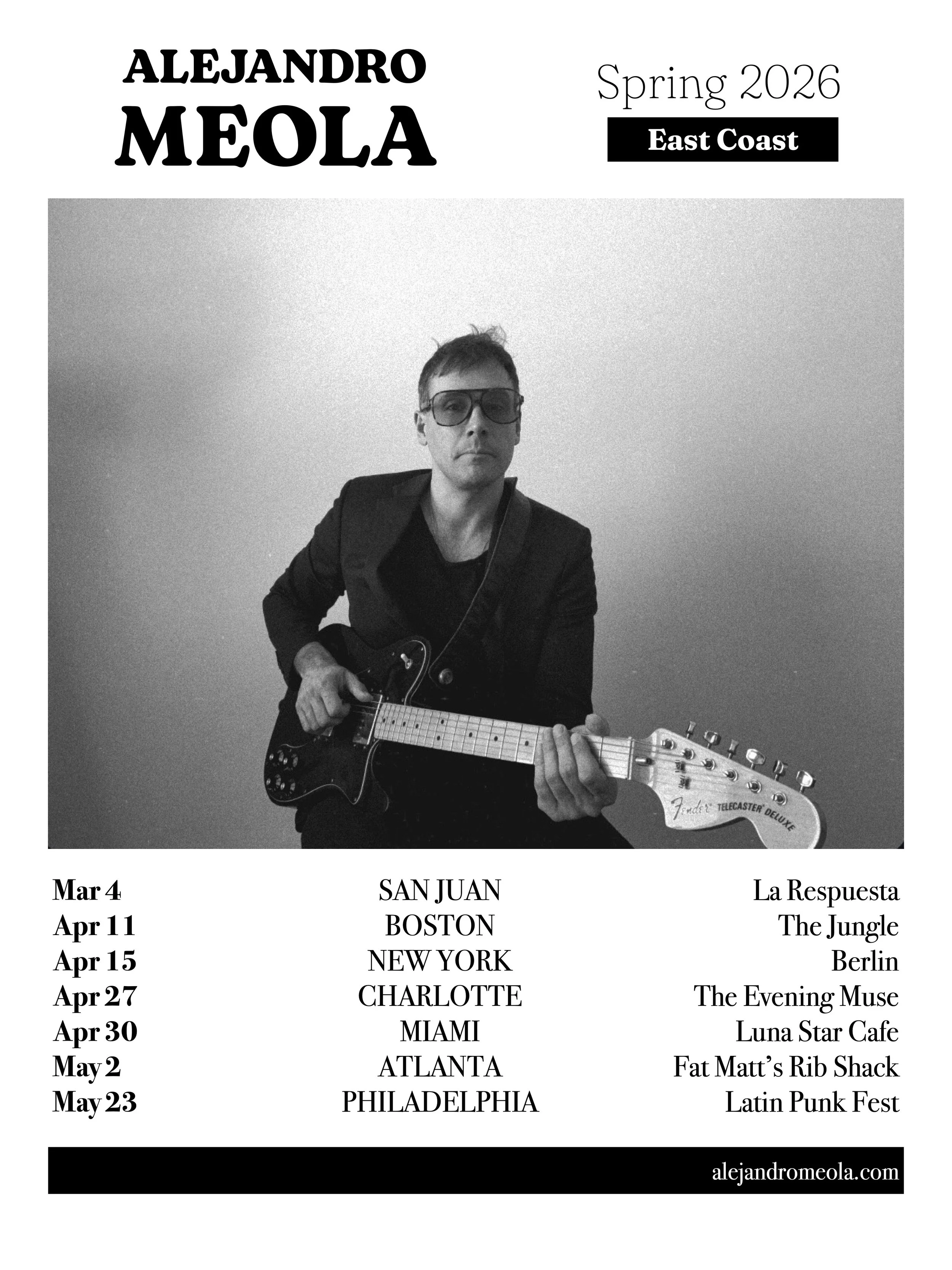 Alejandro Meola is an independent argentine-american singer, songwriter and guitarist. Based in the NYC area since 2013, he was included on NPR’s World Cafe Best New Latinx playlist and has performed across the US, Europe and Latin America in cities like Los Angeles, Chicago, London, Paris, Barcelona, Mexico and Buenos Aires.